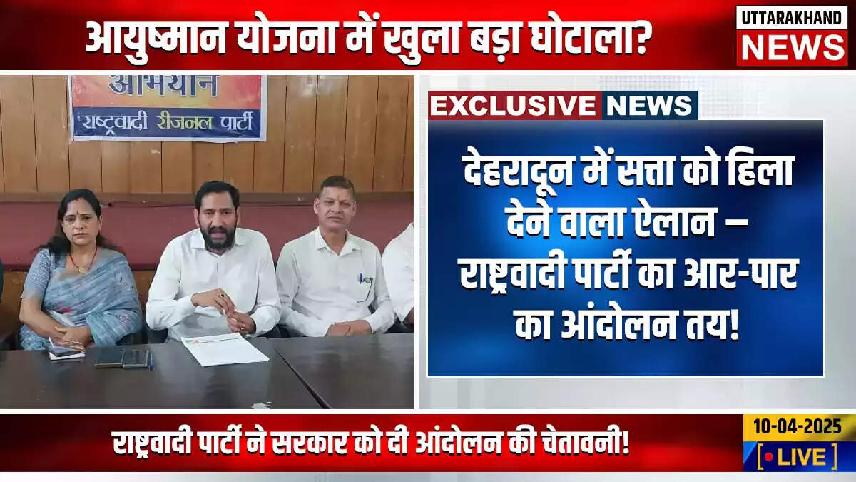देहरादून के प्रेस क्लब में हाल ही में आयोजित एक प्रेस वार्ता में राष्ट्रवादी रीजनल पार्टी ने आयुष्मान योजना में मौजूद खामियों को लेकर तीखा....