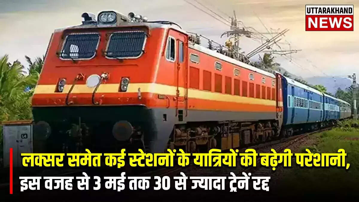 लक्सर समेत कई स्टेशनों के यात्रियों की बढ़ेगी परेशानी, इस वजह से 3 मई तक 30 से ज्यादा ट्रेनें रद्द