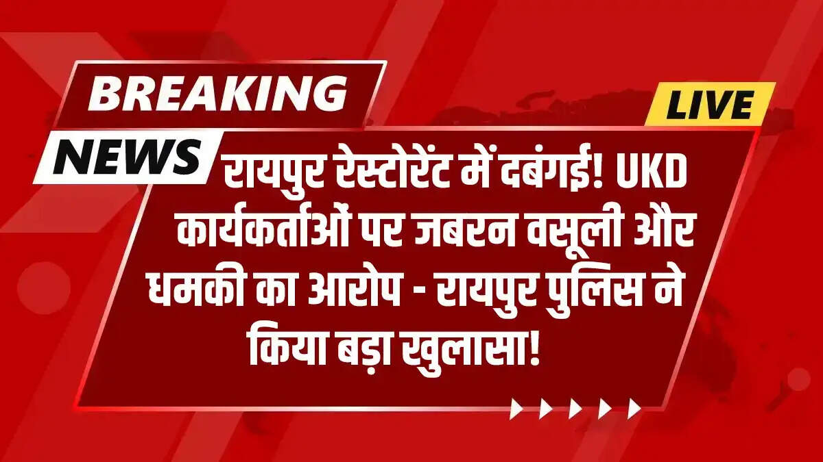 रेस्टोरेंट में दबंगई! UKD कार्यकर्ताओं पर जबरन वसूली और धमकी का आरोप, रायपुर पुलिस ने किया बड़ा खुलासा!